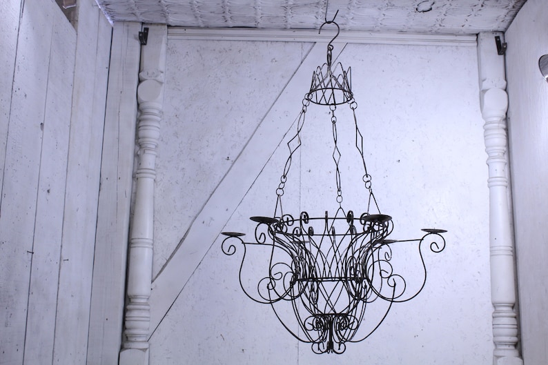 Vintage Country French Wrought Iron Chandelier Vintage