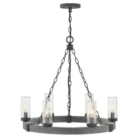 Hinkley Lighting 29206 Sawyer 6 Light 24 Wide Outdoor Wrought Iron Ring Chandelier With Seedy Glass Shades