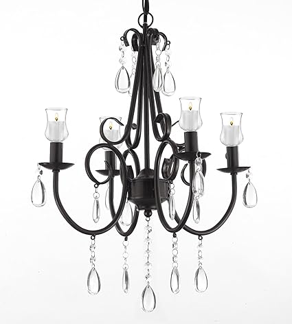 Wrought Iron Crystal 5 Light White Chandelier W Candle Votives Indoor Outdoor