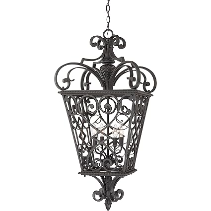Quoizel Fq1920mk01 Fort Quinn Wrought Iron Outdoor Foyer Pendant Lighting 4 Light 240 Watts Marcado Black 41 H X 19 W