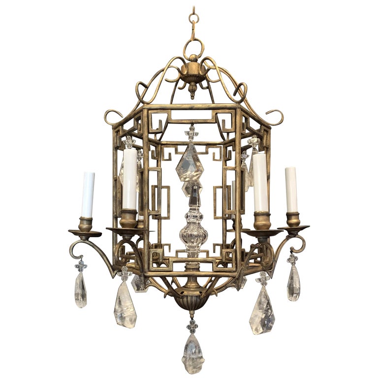 Wonderful French Bagues Pagoda Form Rock Crystal Chandelier Lantern Fixture