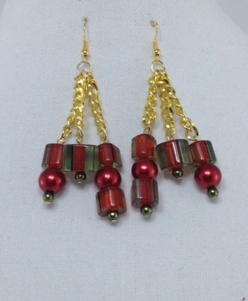 Red Green Gold Chandelier Earrings Chandelier Earrings Dangling Earrings Earrings Jewelry