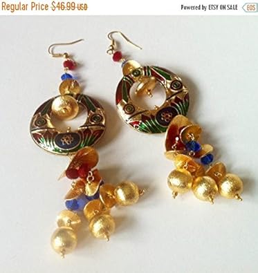 Amazon Com Egyptian Chandelier Earrings Gold Bead Enamel