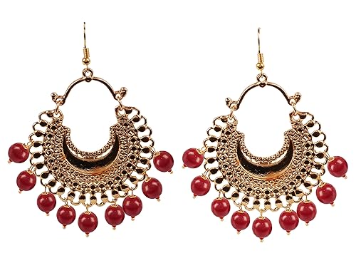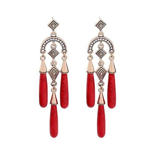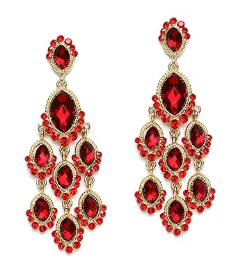Amazon Com Gold Plated Dangle Chandelier Earrings With Red