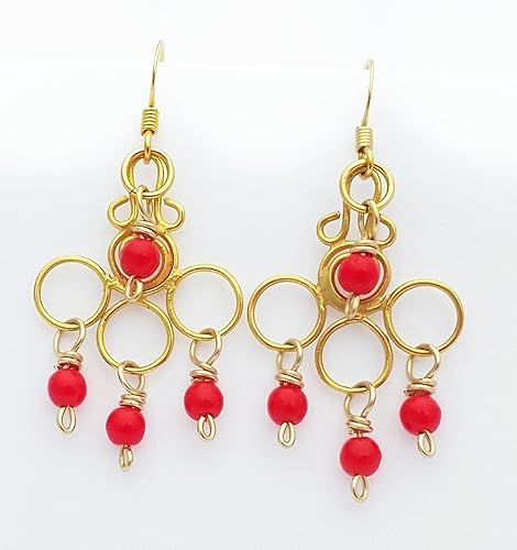 Details About Handmade Chandelier Earrings Red Gold