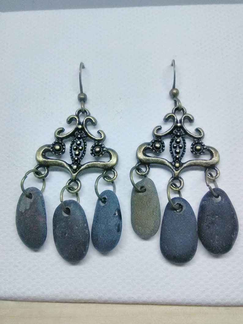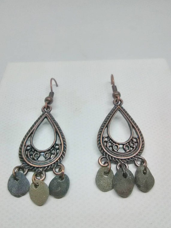 Small Chandelier Earrings Small Stones Earrings Beach Stone Earrings Beach Rocks Beach Lover Earrings Small Rock Earrings Bronze