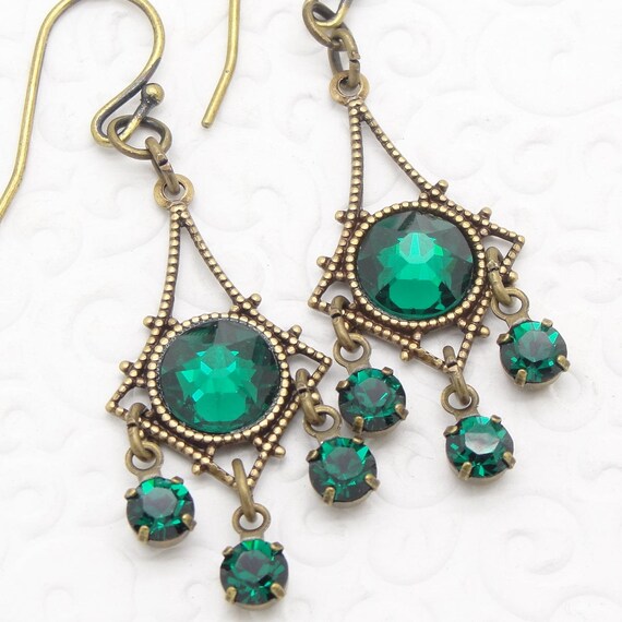 Small Chandelier Earrings With Emerald Green Swarovski Crystal Rhinestones