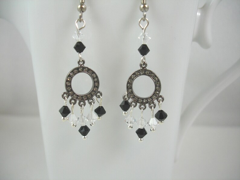 Mini Chandelier Earrings In Crystal And Black Small Chandelier Earrings With Swarovski Crystals