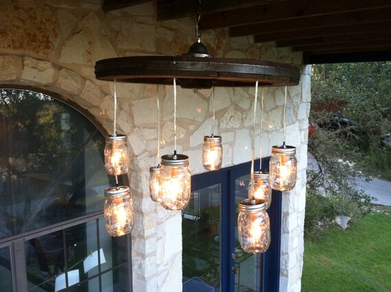 Wagon Wheel Mason Jar Chandelier Lescombes Site
