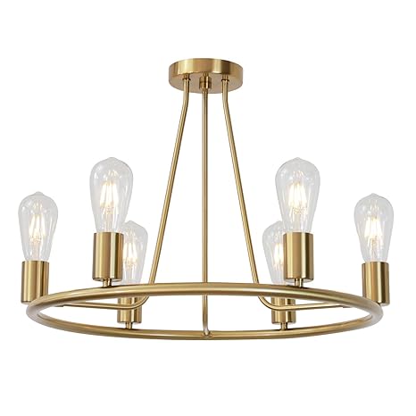 Bonlicht Modern Wagon Wheel Chandelier Lighting 6 Light Brushed Brass Chandeliers Gold Mid Century Ceiling Light Fixture For Kitchen Island Farmhouse