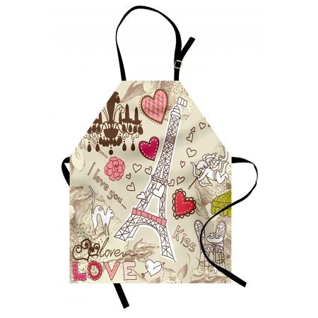 Paris Apron Doodles Illustration Of Eiffel Tower Hearts Chandelier Flower Love Themed Vintage Unisex Kitchen Bib Apron With Adjustable Neck For