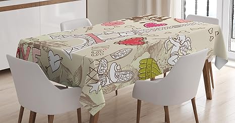 Ambesonne Paris Tablecloth Doodles Illustration Of Eiffel Tower Hearts Chandelier Flower Love Themed Vintage Dining Room Kitchen Rectangular Table