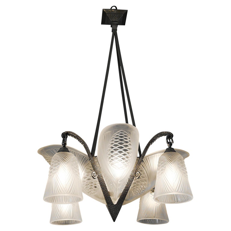 Sevb French Art Deco Pine Cone Chandelier 1920s