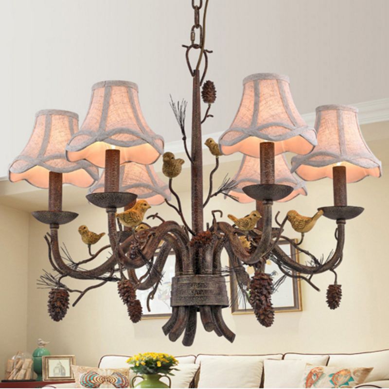 Details About Country Pinecone And Bird Fabric Bell Shade Metal Branch Chandelier Ceiling Lamp