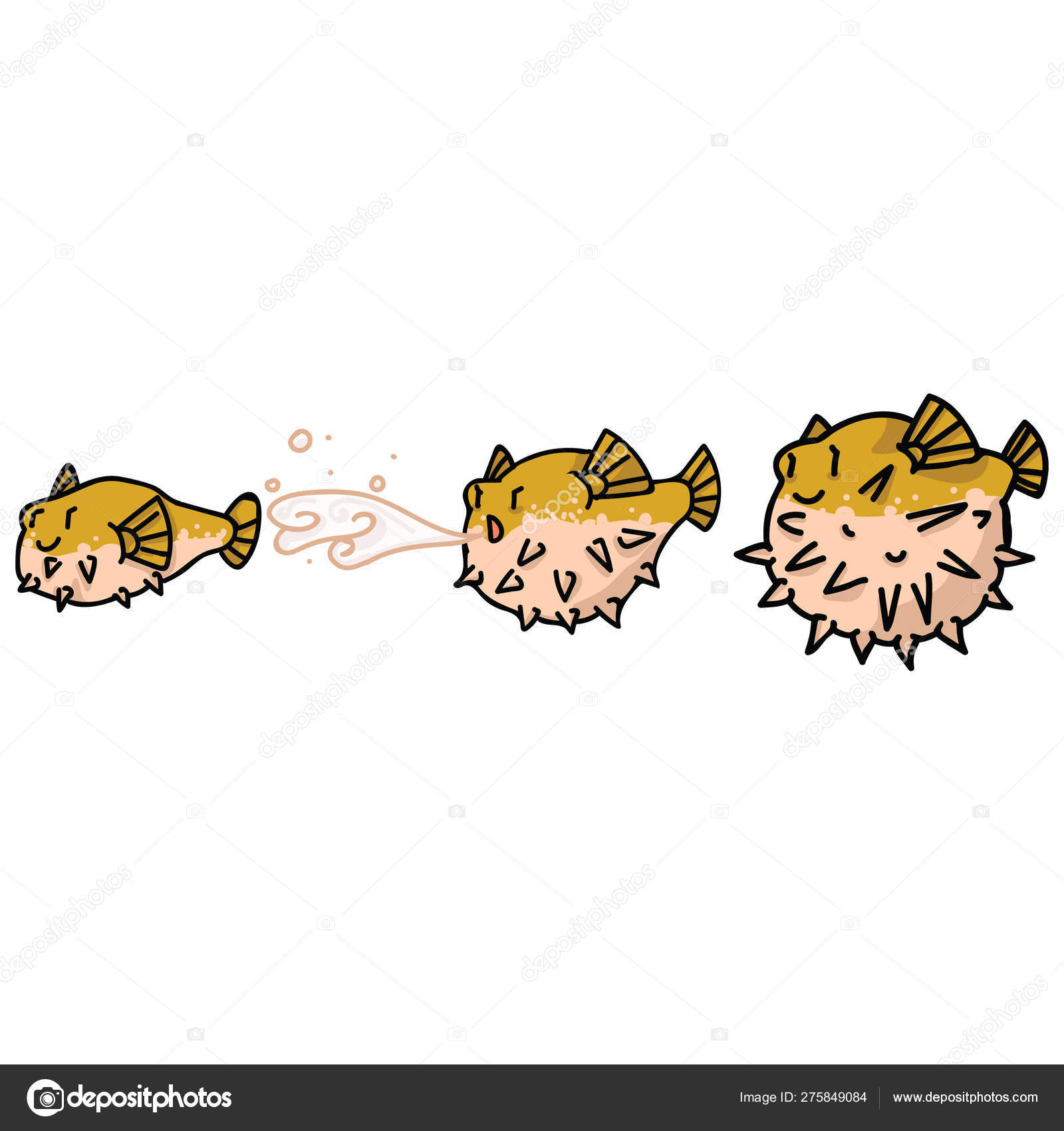 Puffer Fish Spikes Blow Face Defense Cartoon Puffer Fish