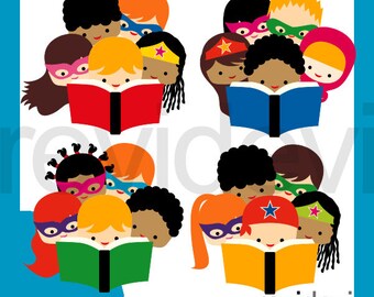 Reading Clipart Superheroes Read Book Clip Art Colaboration Pack