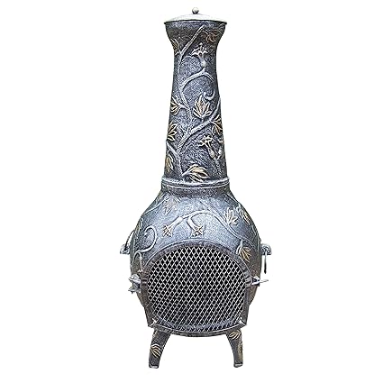 Oakland Living Leaf Decorative Outdoor Chimenea 53 Inch Antique Pewter