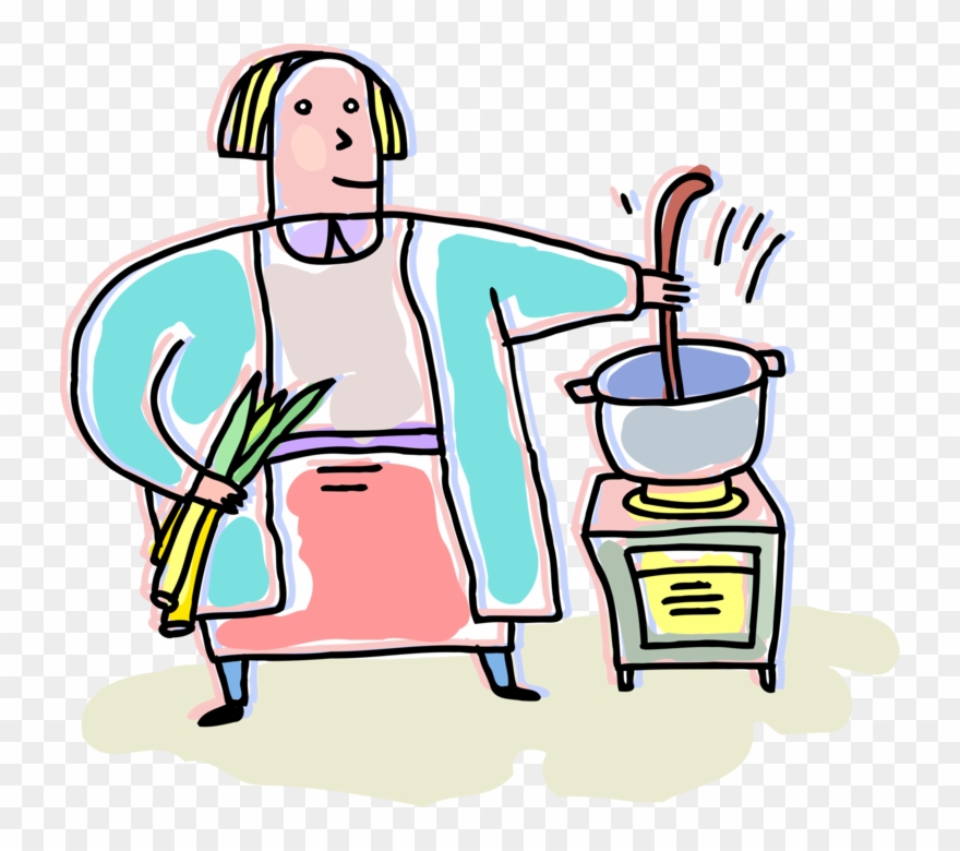 Vector Illustration Of Kitchen Cook Cooking With Soup