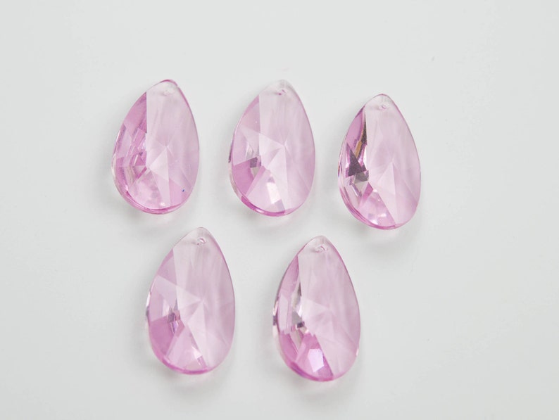 Pack Of 5 Chandelier Crystals Diamond Cut Pink Almond Teardrop