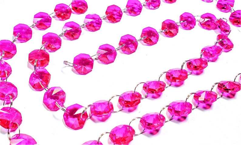 1 Yard Fuchsia Pink Chandelier Crystals Yards With Silver Rings