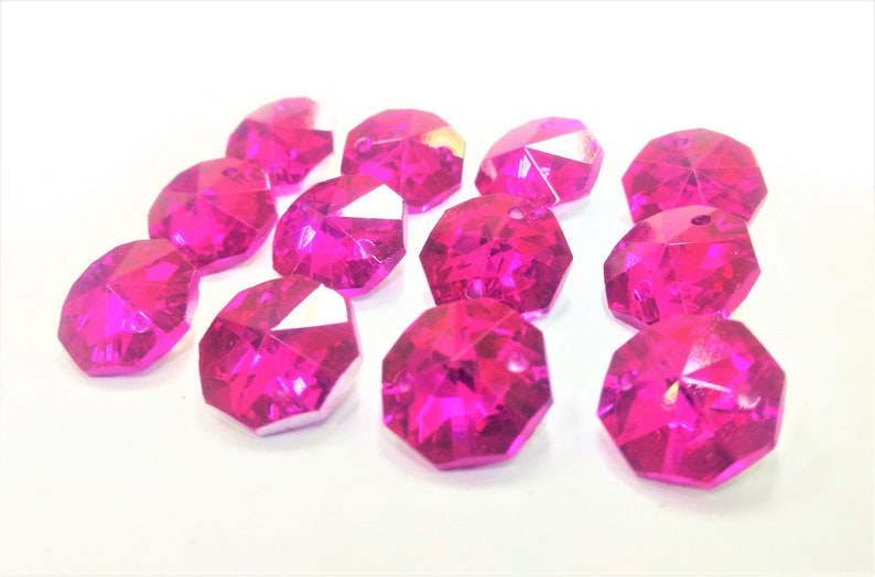 Details About 100 Fuchsia Pink Chandelier Crystals Octagon Beads Prism Suncatcher
