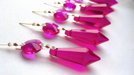 5 Fuchsia Pink Icicle Chandelier Crystals Hot Pink 38mm Ornaments