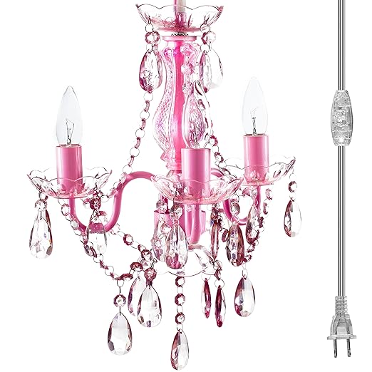 The Original Gypsy Color 3 Light Mini Plugin Pink Chandelier For H17 W12 Pink Metal Frame With Light Pink Acrylic Crystals