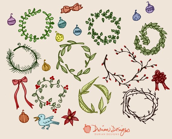 Design Your Own Christmas Wreaths Clipart Commercial Use Xmas Ornaments Clip Art Royalty Free Greenery Plants Holiday Instant Download