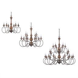 Shabby Chic Candle Style 6 Light Wooden Chandelier