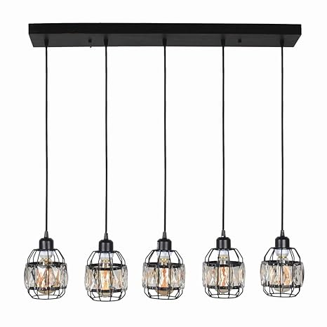 Baiwaiz Modern Crystal Cage Linear Chandelier Lighting Metal And Wood Black Kitchen Island Light Fixture Rustic Elegant Hanging Pendant Chandelier
