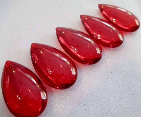 5 Red Diamond Cut 38mm Teardrop Chandelier Crystals Ornaments Ebay