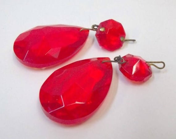 Red Chandelier Crystal Teardrops Lot Of Two 1 1 2 Vintage New Old Stock 1 5 Red Teardrop Chandelier Prism Lighting Supply Jewelry Design