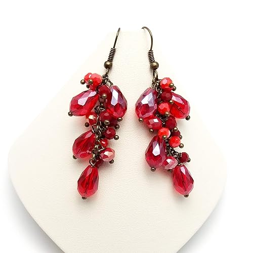Red Chandelier Earrings Long Elegant Crystals Earrings