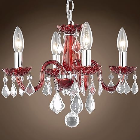 Somette 4 Light Red Chandelier With Crystals And Shades