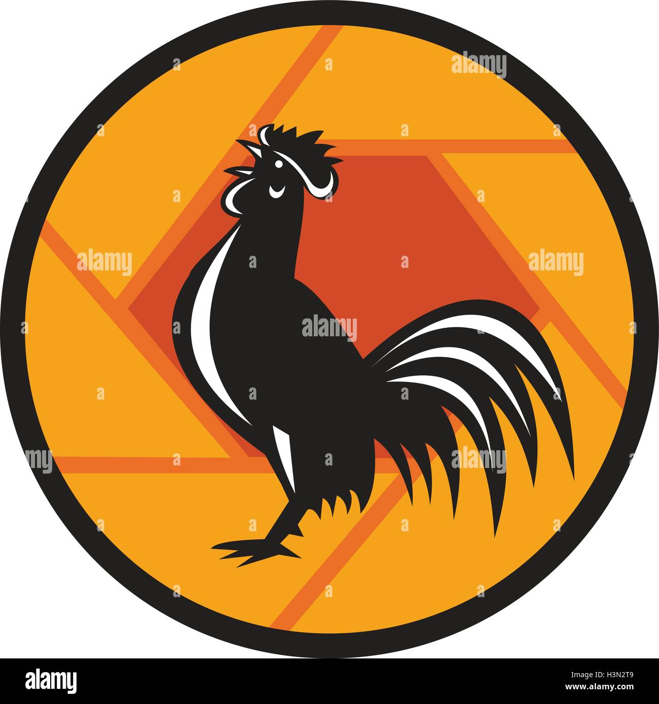 Illustration Of A Rooster Cockerel Crowing Facing Side Set Inside