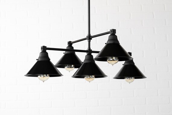 Black Shade Chandelier Five Shade Ceiling Light Edison Bulb Chandelier Kitchen Island Light Steampunk Lighting Industrial Lighting