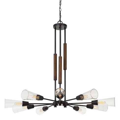 60w X 9 Vasto Wood Metal Chandelier With Glass Shade Ceiling Light Edison Bulbs Not Included Cal Lighting