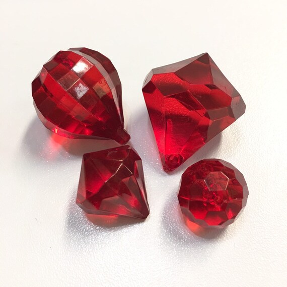 Chandelier Red Faux Crystal Prisms Beads Acrylic Plastic Lamp Part Pieces Ornaments Ruby Diamond Jewel Shaped Hot Air Balloon Christmas Gems