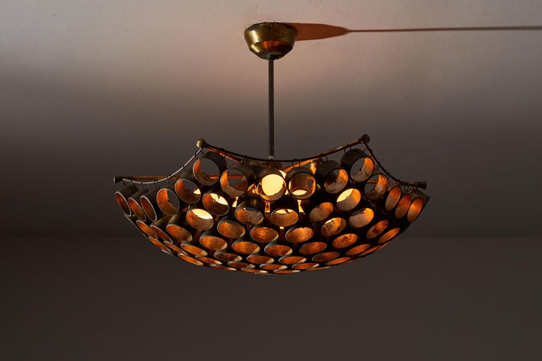 Copper Brass Hanging 1930s Chandelier Light Fixture For Rewire