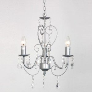 Grey Ornate Vintage Style Shabby Chic 3 Way Ceiling Light Chandelier With Beautiful Acrylic Jewels