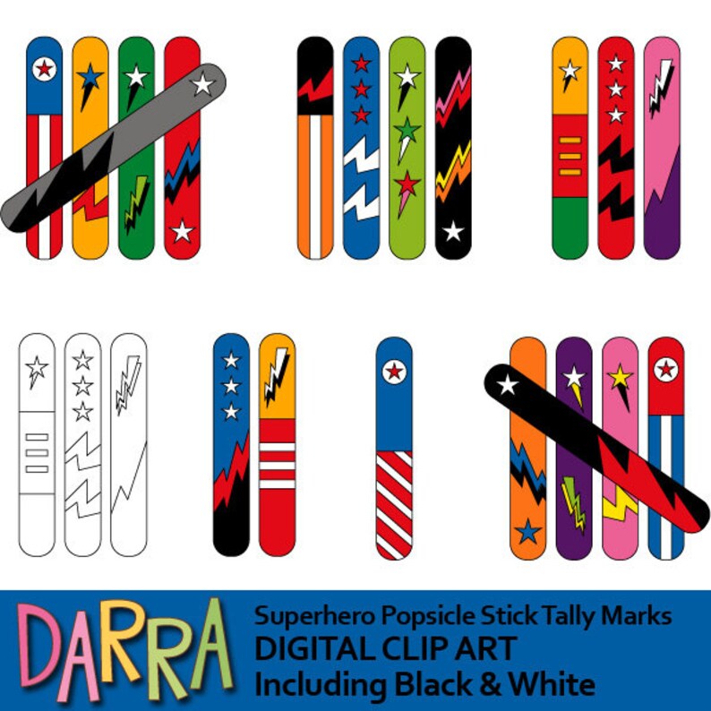 Colorful Popsicle Sticks Clip Art Bundle Color And B W