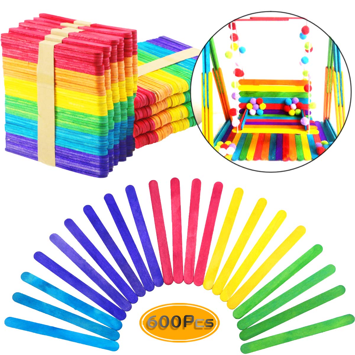 Uplama 600 Pcs Colored Craft Sticks Wooden Popsicle Sticks Natural Jumbo Wooden Popsicle Sticks For Diy Craft Creative Designs Or Children Education