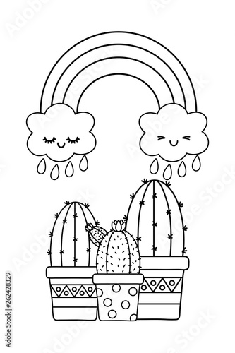 Cloud And Rainbow Cartoon In Black And White Vector Image