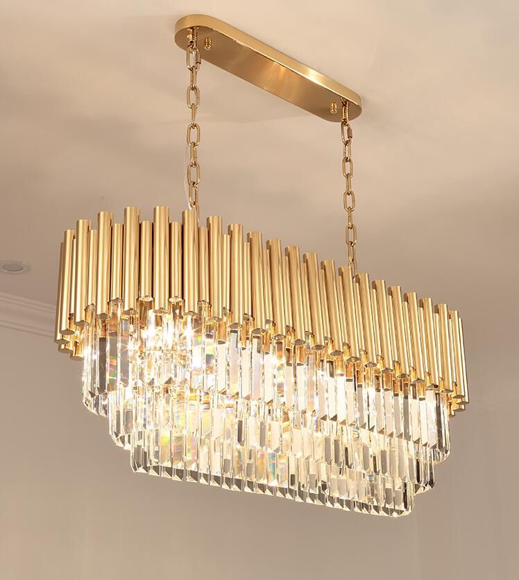 New Modern Light Luxury Rectangular Chandelier K9 Crystal Lamp Home Dining Room Lamp Gold Decorative Light Brushed Nickel Chandelier Oil Rubbed Bronze