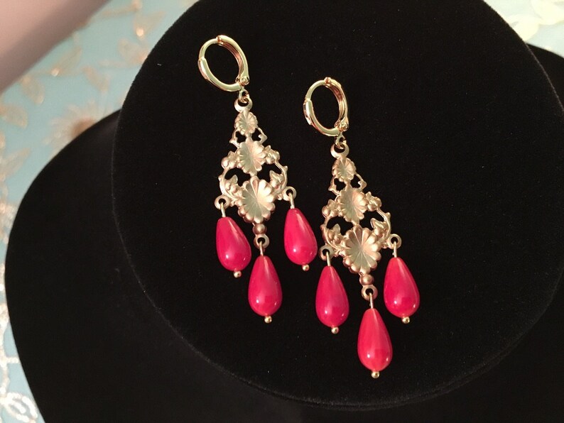 Red Coral Chandelier Brass And Gold Earrings Pair Of Reproduction 19th Century Chandelier Earrings Red Coral