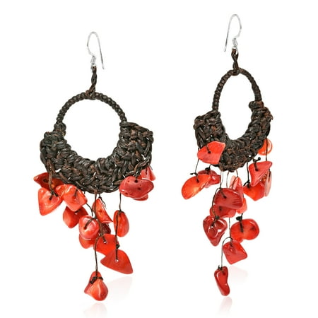 Reconstructed Red Coral Chandelier Hoop Dangle 925 Sterling Silver Earrings