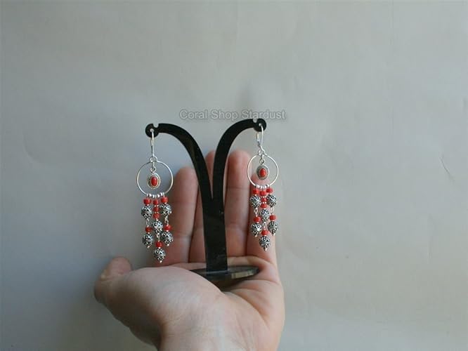 Details About 925 Sterling Silver Hooks Red Coral Gemstone Chandelier Earrings Hindu Bohemia