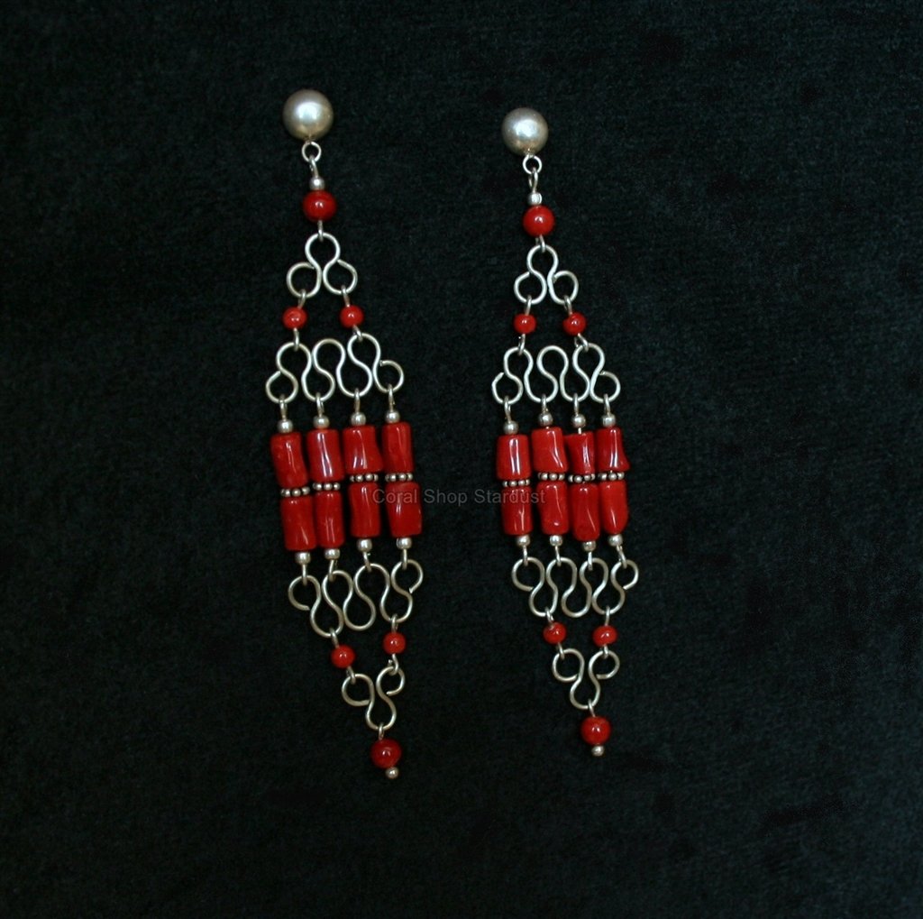 Thai Silver Precious Red Coral Chandelier Earrings 13 From Roxy S Eclectic Designs
