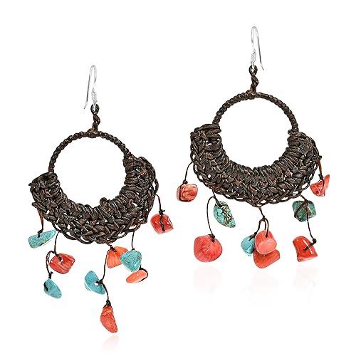 Simulated Turquoise Reconstructed Red Coral Chandelier Hoop Dangle Earrings