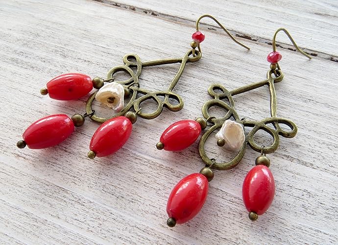 Amazon Com Red Coral Chandelier Earrings Long Earrings